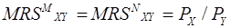 На конкурентному ринку всі споживачі купують товари за одними й тими ж рівноважними цінами, тому гранична норма заміни благ для всіх споживачів в економіці буде однаковою: