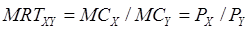 Оскільки і виробники, і споживачі прирівнюють граничні норми заміни благ до однакових ринкових цін, то гранична норма трансформації будь-якого блага в інше у сфері виробництва дорівнює граничній нормі заміни цих благ для кожного споживача: