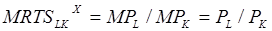 Оскільки ефективне виробництво товару здійснюється до точки, де для кожного товару, то .