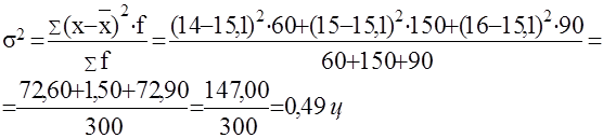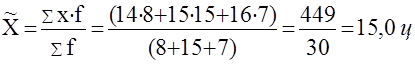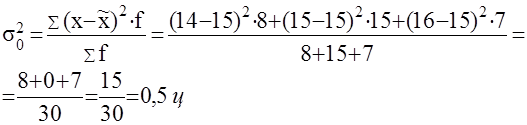 Определим по этим данным среднюю урожайность, дисперсию урожайности и долю участков с урожайностью в 15 и более ц с га для генеральной и для выборочной совокупности.