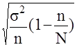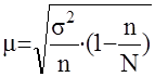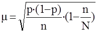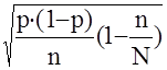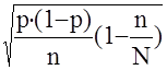 Генеральную совокупность обозначим через N, тогда доля выборочной совокупности n, будет равна . Поэтому в формулу ошибки выборки при повторном отборе должен быть введен дополнительный множитель . Тогда формулы ошибок выборки бесповторного отбора примут следующий вид: