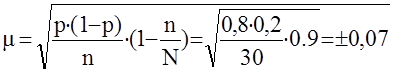 Полученная величина ошибки выборки показывает, что доля участков с урожайностью 15 ц с 1 га в общем числе участков может отклоняться на ±0,07 от доли участков с подобной урожайностью во всей генеральной совокупности.