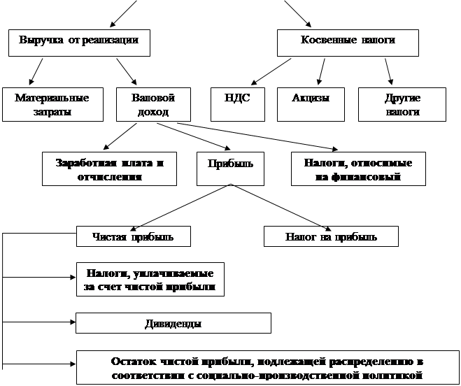 Если поступление выручки на денежные счета предприятия – завершение кругооборота средств, то её использование представляет собой, как начало нового кругооборота, так и стадию распределительных процессов, при которой формируется доходная база бюджетов разных уровней и обеспечиваются тем самым общегосударственные интересы, а также образуются собственные финансовые ресурсы предприятия.