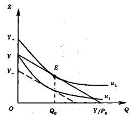 Если бы данного продукта не существовало, весь доход тратился бы на другие продукты, и равновесие потребителя соответствовало бы точке на оси координат, в которой объем Z равен доходу У (рис. 2). В этой же точке оставался бы потребитель и в случае слишком высокой цены данного продукта. При этом уровень его благосостояния соответствует кривой безразличия.