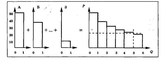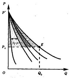 (q) — цена спроса при объеме q, равная, как уже отмечалось, предельной полезности последней единицы при данном объеме потребления.