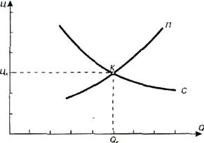 и так далее по спирали. Но с каждым витком ценовые интересы все больше и больше сближаются, пока не наступит их равновесие в точке К, которой соответствует цена равновесия Цк