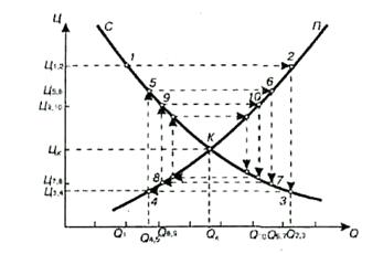 Рис. 8. Процесс становления равновесной цены