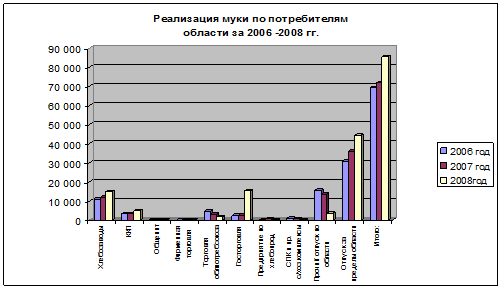 Рисунок 4 – Реализация муки по областям 2006-2008 гг