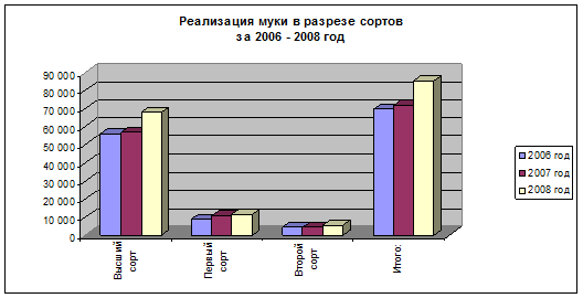 Реализация муки в разрезе сортов за период 2006-2008 гг. представлена на рисунке 3.