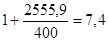 +561,3*0,55+867,9*0,48+1174,4*0,41+1480,9*0,35+1787,5*0,31=2555,9 у.е.