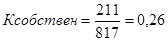 - Коэффициент концентрации собственного капитала (или финансовая независимость предприятия) определяется по формуле: