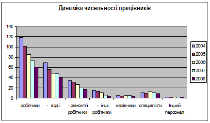 Таблиця 1.5 – Динаміка чисельності працівників ВАТ «Лубенське племпідприємство»