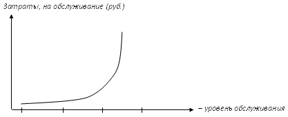 Таким образом, рост конкурентоспособности компании, вызванный ростом уровня обслуживания, сопровождается, с одной стороны, снижением потерь на рынке, а с другой – повышением расходов на сервис. Задача логистической службы заключается в поиске оптимальной величины уровня обслуживания.