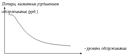 С другой стороны, снижение уровня обслуживания ведет к увеличению потерь, вызванных ухудшением качества сервиса. Эта зависимость также может быть представлена графиком (рис.3).
