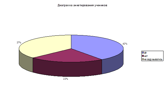 На первый вопрос 40 % опрошенных учеников ответили – да, 23 % - нет, 37 % - не задумывались (приложение 3).