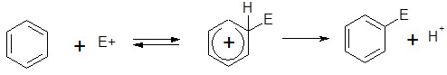В настоящее время ароматическое электрофильное замещение рассматривается как двухстадийная реакция присоединения-отщепления с промежуточным образованием аренониевого иона, называемого σ-комплексом