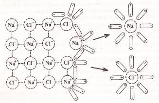 Диэлектрическая проницаемость воды сравнительно высока (ε = 81 при Т = 293К), в воде силы притяжения между разноименно заряженными ионами будут в 81 раз слабее, чем в вакууме.