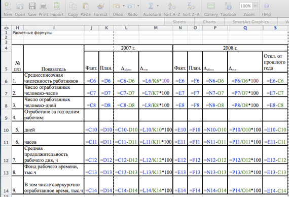 Средняя фактическая продолжительность раб. дня =Число отработанных чел-час / Число отработанных чел-дней;