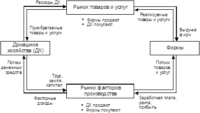 домашние хозяйства выступают в роли покупателей, а фирмы – продавцов. Домашние хозяйства приобретают товары и услуги, которые производят фирмы.