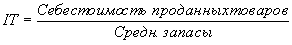 (Inventory Turnover) - финансовый показатель, рассчитываемый как отношение себестоимости проданных товаров к среднегодовой величине запасов.