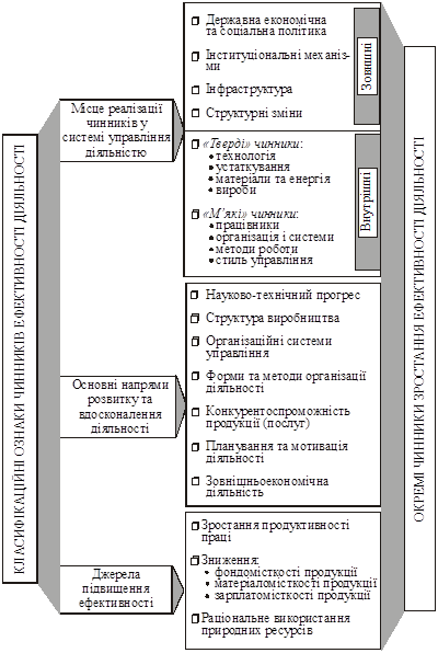 Практично найбільш важливою треба вважати класифікацію чинників ефективності за місцем реалізації в системі управління діяльністю