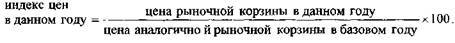 Индекс цен является измерителем соотношения между совокупной ценой набора товаров ("рыночной корзины") для данного временного периода и совокупной ценой "корзины" в базовом году: