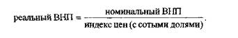 Простым методом дефлирования либо инфлирования номинального ВНП данного года является деление номинального ВНП на индекс цен: