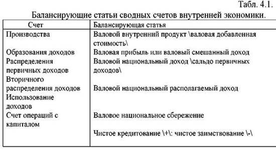 В табл. 1 отражены балансирующие статьи сводных счетов внутренней экономики.