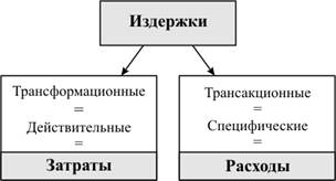 Под специфическими издержками понимаются расходы, связанные с уменьшением величины капитала (трансакция между товаропроизводителем и внешней средой). Расходами в российской и международной практике понимается уменьшение экономических выгод в результате выбытия активов (денежных средств, иного имущества) и (или) возникновения обязательств, приводящее к уменьшению капитала этой организации, за исключением уменьшения вкладов по решению участников (собственников имущества).