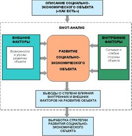 Он включает анализ сильных и слабых сторон развития исследуемого объекта в их взаимодействии с угрозами и возможностями и позволяет определить актуальные проблемные области, узкие места, шансы и опасности, с учетом факторов внешней среды.