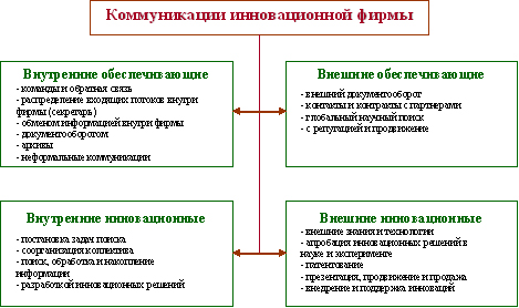 Одним из таких базовых обеспечивающих механизмов в инновационном процессе, безусловно, являются коммуникации фирмы. Разумно подразделять коммуникации на внутренне и внешние коммуникации.