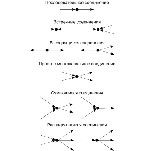 Внутрисистемные межкомпонентные связи составляют структуру организации, но не определяют ее строение. Основой строения структуры является соединение - узел связи со всей совокупностью входящих и исходящих каналов.