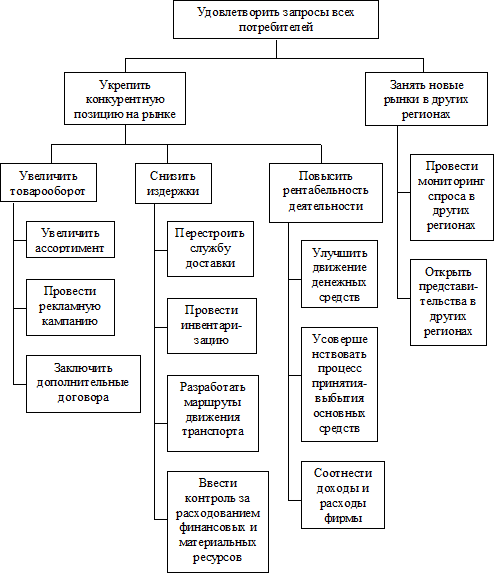 В рамках данной миссии можно сформулировать цели, стоящие перед организацией и представить их графически в виде дерева целей (рисунок 7).