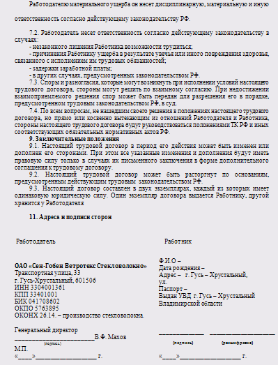 7.2. Работодатель несет ответственность согласно действующему законодательству в случаях: