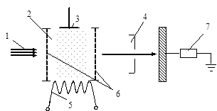 Рисунок 9 – Схема времяпролетного масс-спектрометра: 1– анализируемый газ; 2– зона ионизации; 3 – анод; 4– камера дрейфа; 5– катод; 6– сеточные электроды камеры ионизации; 7– система регистрации ионного тока