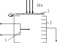Рисунок 10 – Принципиальная схема ионизационного датчика для измерения плотности потока испаренных частиц: 1– катод; 2– дискриминатор; 3– коллектор ионов