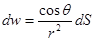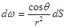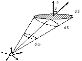 Массовую скорость испарения из точечного испарителя v, кг/с будем считать постоянной в течение всего процесса осаждения покрытия. На поверхность dS будут осаждаться все атомы, испаренные в телесном угле dω. Испаряющееся в единицу времени в этом телесном угле количество вещества