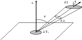 Пусть мы имеем площадку dS, расположенную под углом Θ к направлению распространения испаренных атомов (рисунок 11) и находящуюся от точечного испарителя на расстоянии r.