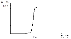 Рисунок 15 – Зависимость оптической прозрачности металлического покрытия, нанесенного на полиэтилен, от температуры поверхности