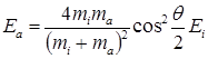 где mi, mа – масса иона и атома мишени соответственно;vi , vi,1–скорость иона до и после взаимодействия; vа – скорость атома мишени после столкновения; – угол рассеяния.