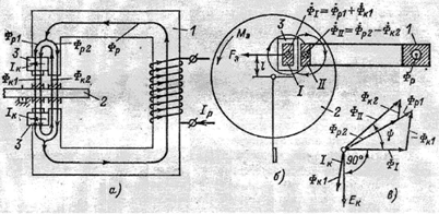Обмотки реле живляться змінним струмом, котрий створюють змінні магнітні потоки. Пронизуючи рухому систему, магнітний потік створює в ній ЕДС. Під дією ЕДС в рухомій системи виникають вихрові струми.