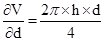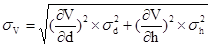 Рассчитаем погрешность при косвенных вычислениях величины V, на основе величин h и d, измеренных штангенциркулем.