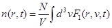 где σ (х) — ступенчатая функция (напоминаем, что функция f(r, v, t) связана с F1 (r, v, t) соотношением f = F1n = F1/ω).