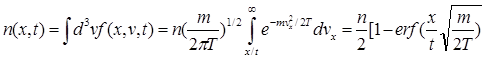 Мы ограничимся нулевым приближением (30) и в качестве иллюстрирующего примера рассмотрим задачу о свободном расширении газа в пустоту. Пусть в начальный момент t = 0 газ с максвелловским распределением по скоростям в одномерном случае занимает полупространство х<0. Затем стенка х = 0 удаляется и газ начинает расширяться.