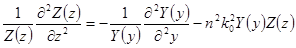 Одержали рівняння поширення, що описує, хвилі в оптичному хвилеводі. Це рівняння з змінними і його рішення варто шукати у вигляді добутку двох функцій, одна й з яких залежить тільки від y, а друга тільки від z. Розподіл амплітуди поля по координаті x передбачається рівномірним.