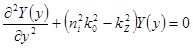 Таким чином, рішення має вигляд гармонійної хвилі, що поширюється уздовж осі Y і має амплітудний розподіл Y(y) у напрямку, поперечному стосовно напрямку поширення.