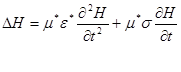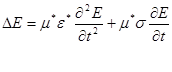 де , - вектор щільності електричного струму , де - сумарна щільність об'ємного заряду в досліджуваному об'ємі. Тимчасову залежність можна представити у вигляді експоненти .Тоді диференціальні рівняння для E і H приймуть вид: