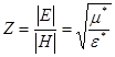 У випадку плоскої хвилі вектори E,H,k ортогональні й відношення модулів векторів E,H :