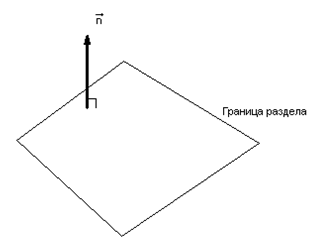 Де індексом i позначені частки векторів, дотичні до поверхні роздягнула двох середовищ 1 і 2. А індексом n – частки нормальні до цієї поверхні. Величина J – щільність поверхневих струмів провідності, а - щільність електричних зарядів, причому в тих випадках, які ми будемо розглядати, вони дорівнюють нулю. Цього ж рівняння можна представити у векторній формі, якщо ввести в розгляд одиничний вектор нормалі до границі роздягнула.
