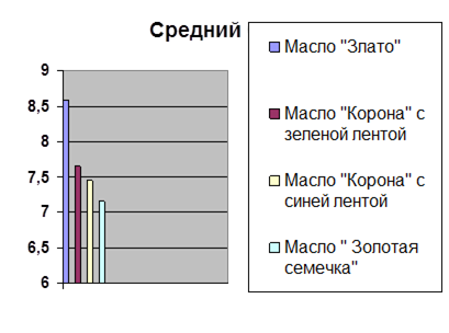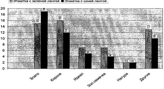 Лидером в предпочтениях опрошенных стала этикетка масла «Злато» (ее средний балл 8,59), далее этикетка масла «Корона изобилия» (7,9). Цветовые предпочтения выбора этикеток - зеленый цвет (мотивировали тем, что продукт растительного происхождения, а растения - зеленые). Этикетки продукции «Сигмы» имеют два цветовых направления: зеленый и синий. Данные результаты опроса следует учесть в будущем.
